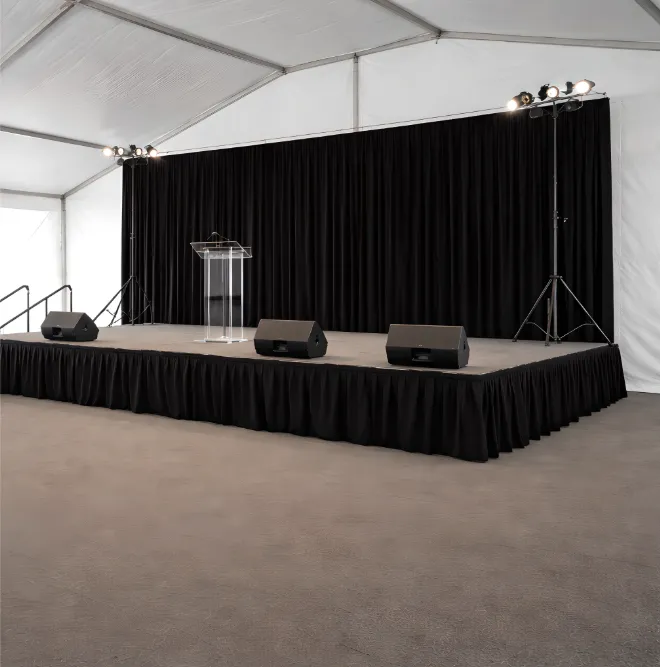 This product is not available for Pickup. Stage Skirting and Stairs are rented separately and can be added on to elevate the look of the Stage